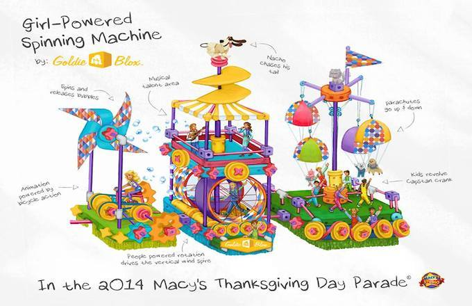 It seems that among the many helium-filled advertisements for cartoons, fast food, and movies, this year’s Macy’s Thanksgiving Day Parade will debut a new float: the “Girl-Powered Spinning Machine”, a Rube Goldberg-looking device, most likely powered by a bunch of telegenic girls, promoting the toy company GoldieBlox. For those who are unaware, GoldieBlox’s mission is to influence young girls into becoming engineers or joining other STEM (Science, Technology, Engineering, and Math) professions. They do this by offering visually attractive “engineering”-type toys which are used in conjunction with story lines and characters that appeal to girls. For only the second time in history (see 2001’s “Bob the Builder” float) a Macy’s Parade float has taken aim at enhancing the construction intellect of the nation’s children.