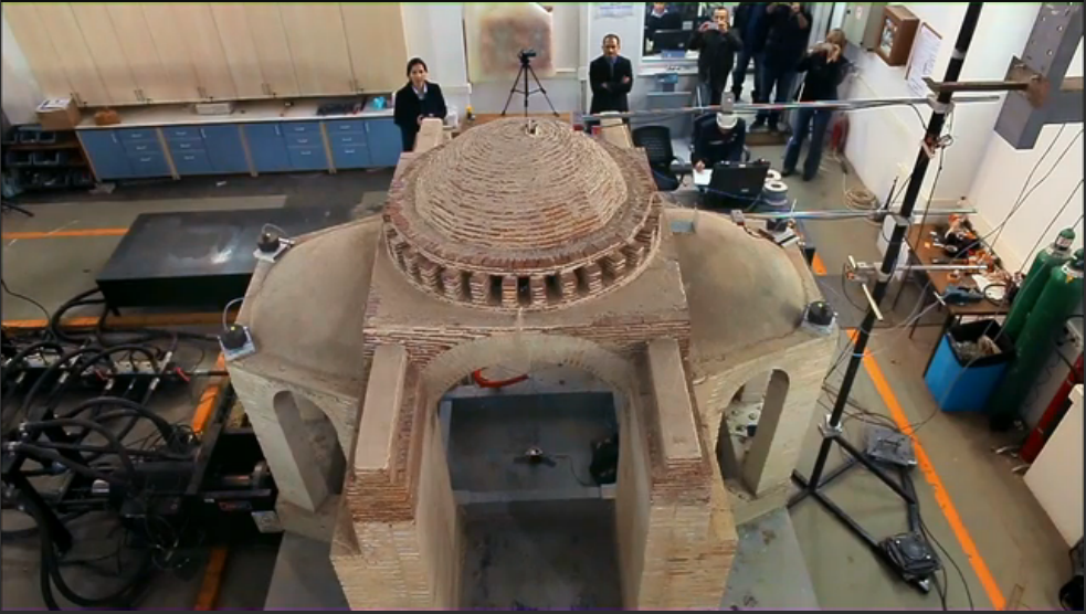 Scale model of Hagia Sophia on a hydraulic shake table,