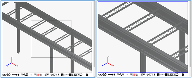 ‘Zoom to Window’ is activated by clicking the icon at the bottom of the Graphics Area, or by pressing Hot Key W (when the cursor is active in the Graphics Area). Once clicked, the icon is highlighted, indicating ‘Zoom to Window’ is active. At this point you can draw a window around the area you wish to enlarge by dragging the Mouse while holding down the Left Mouse Button. Once the Left Mouse Button is released, CloudCalc zooms to the best fit of the selected area.